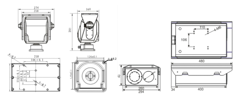 | Rotation Range | Horizontal: 0~360° (0.23°~40.6°/s) Vertical: -70°~+45° (0.23°~10.5°/s) |